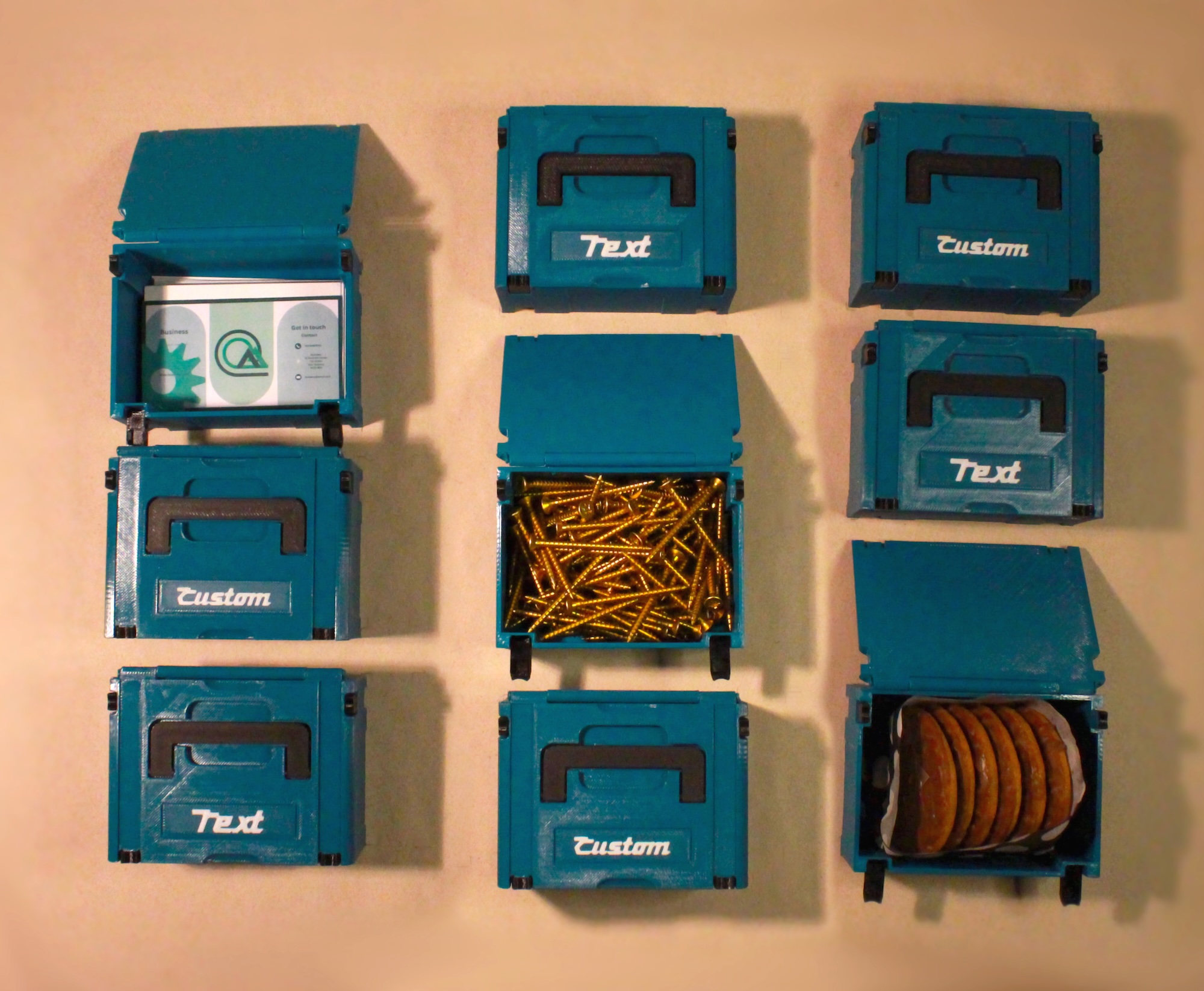 The perfect gift for the tool lover in your life. This mini storage box is inspired by the Makpac toolboxes. Meticulously designed and 3D printed by us, this giftbox is not only a cute novelty but also practical. Hinged clips on the front ensure that the box stays closed, keeping your valuable items safe.